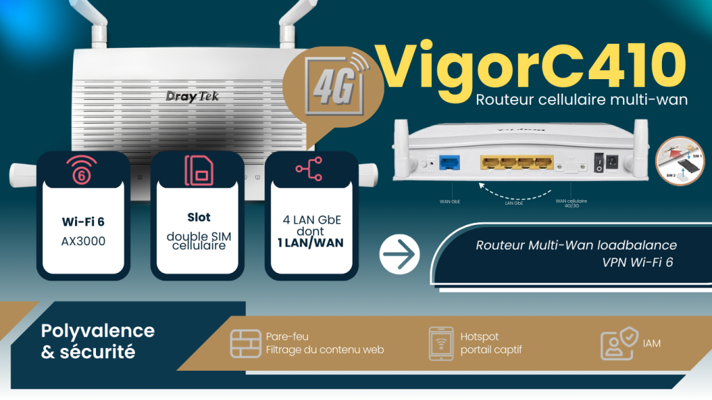 Avec le Vigor C410, DrayTek propose une solution robuste et intelligente pour ceux qui ne peuvent pas se permettre de perdre leur connexion. La redondance cellulaire n’a jamais été aussi simple et efficace.