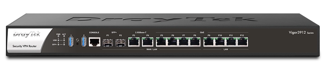 Routeur Multi-WAN 12 ports dont 8 interfaces WAN/LAN, (2 ports 10Gbps SFP+ pour la connectivité fibre, 2 ports Ethernet Rj45 2,5Gbps, 4 Gigabit Ethernet RJ-45) et 4 ports LAN GbE fixe.