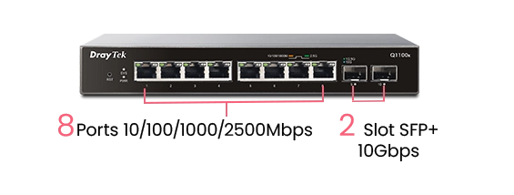 VigorSwitch Q1100x est une solution robuste pour les environnements professionnels exigeants, offrant une gestion simplifiée et une performance réseau accrue